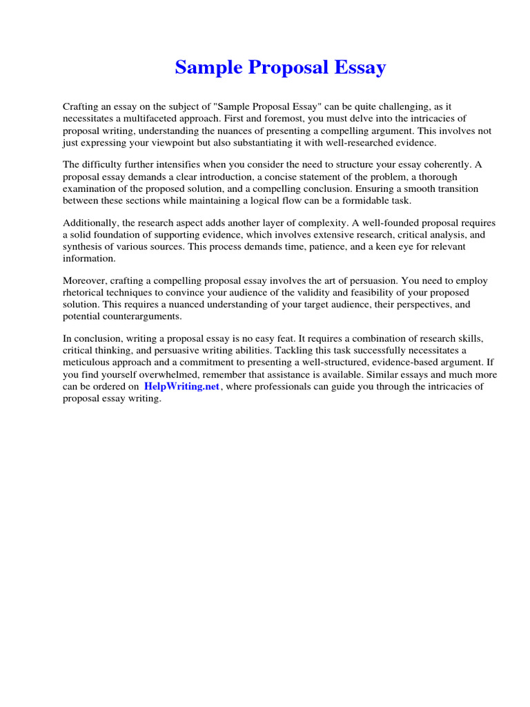 Sample Proposal Essay Download Free PDF Essays