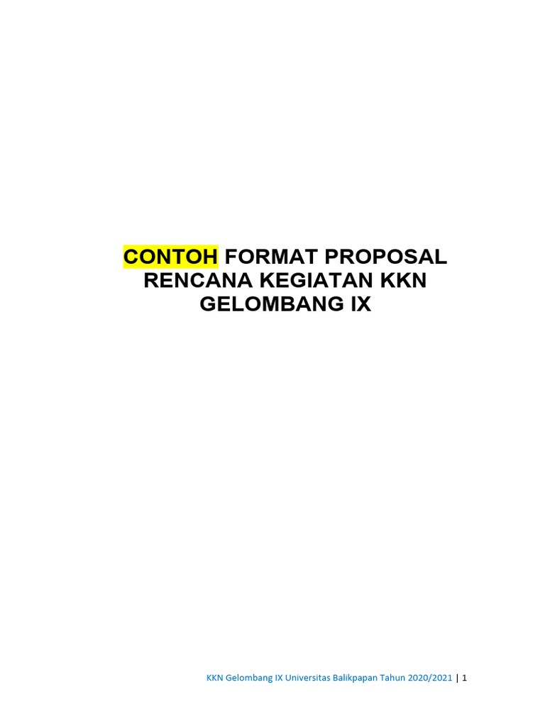 Format Proposal Kegiatan KKN Gel Ix 20202021 PDF Seni