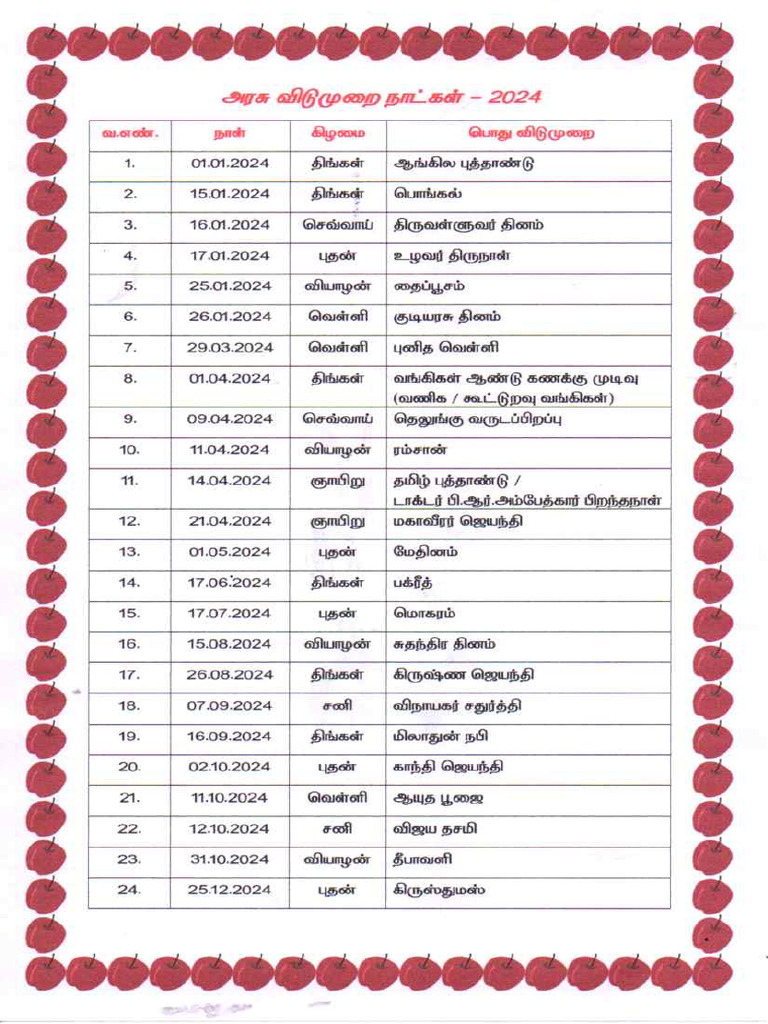 2024 RH List, GOVT HOLIDAYS LIST PDF FLASH NEWS KALVI