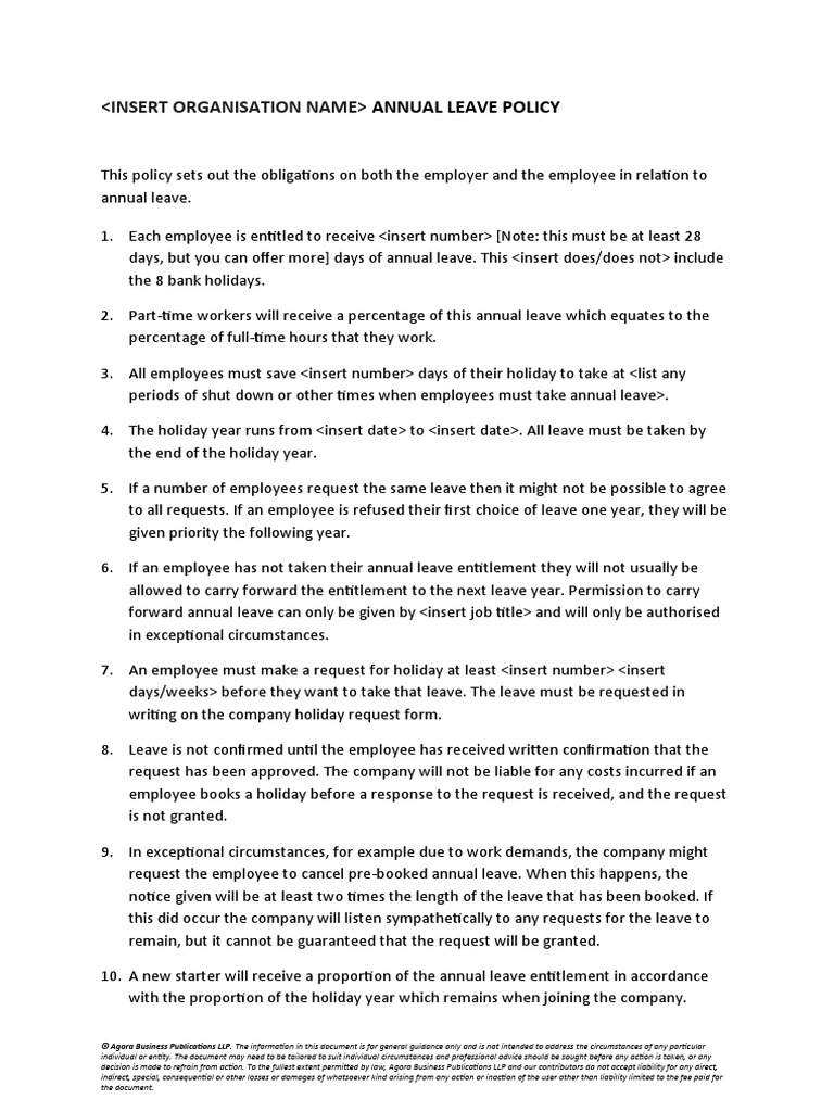 Annual Leave Policy Template & FAQs Rocket Lawyer UK