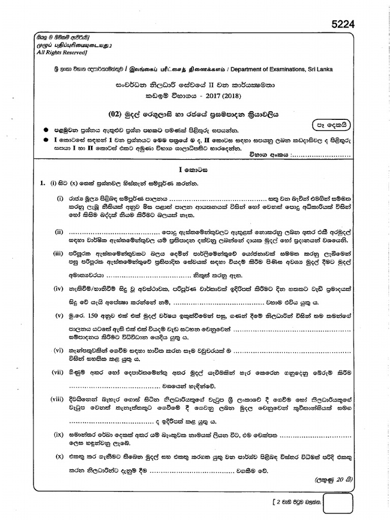 Second Efficiency Bar Examination Papers Sinhala Medium PDF