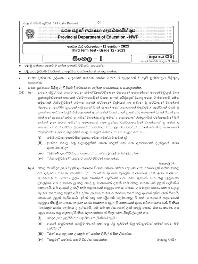 Grade 12 sinhala 3rd term test paper 2019 | north central province 2019 north central province grade 12 sinhala 3rd term test paper with. Download grade 12 past papers, model papers, syllabus & teacher guide, text books in sinhala, tamil and english medium. Gazette, government documents, exam past papers, model papers, term test papers, text books free download. Sri lankan.
