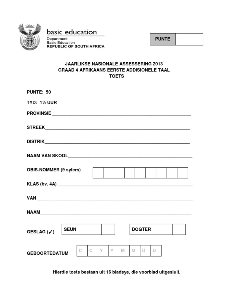 New 2013 Grade 4 Afrikaans FAL 2013 Test PDF