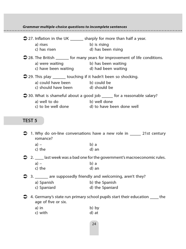 Download free pdf tests for english learners and teachers here you can find pdf versions of the all online tests published on this website. All downloads are in pdf format and consist of a worksheet and answer sheet to check your results. The questions cover a range. The document contains a practice english test with multiple choice questions at three different levels of difficulty. Grammar quiz mixed practice #1 ⚫ choose the best answers.