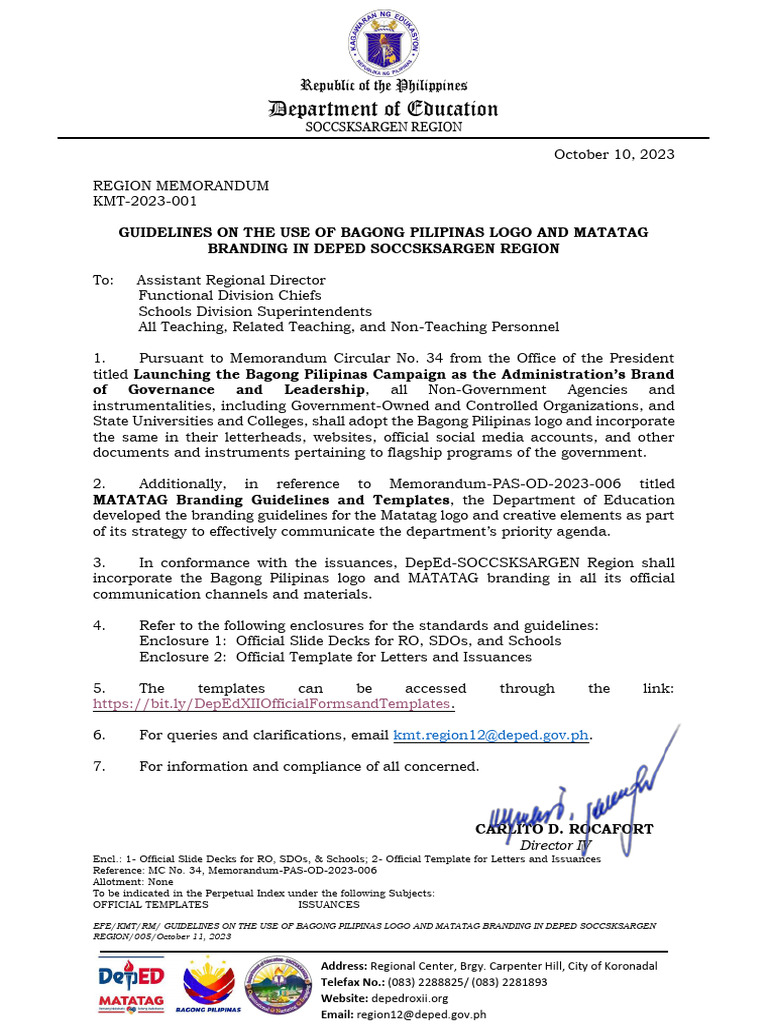Region Memorandum KMT 2023 001 GUIDELINES ON THE USE OF BAGONG