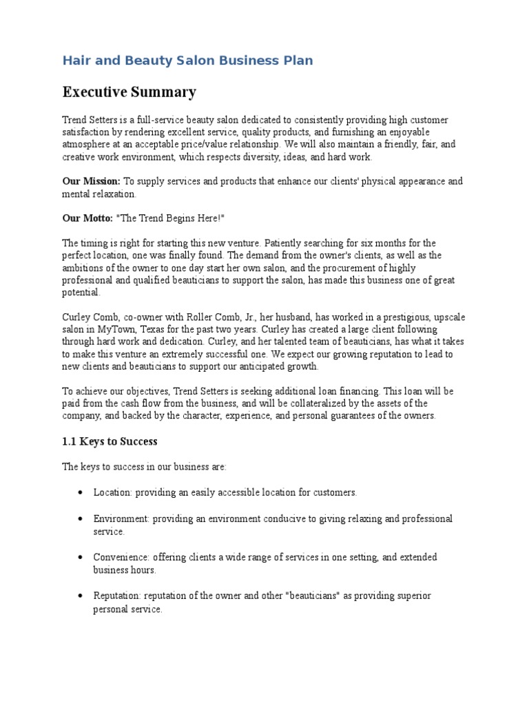 The document outlines a business plan for a beauty salon offering a wide range of cosmetic services and products, emphasizing customer. Fast, easy set upencrypted/hipaa compliant Looking for a free, downloadable hair and beauty salon sample business plan word doc or pdf to help you create a business plan of. Do you run a beauty salon and are looking into.