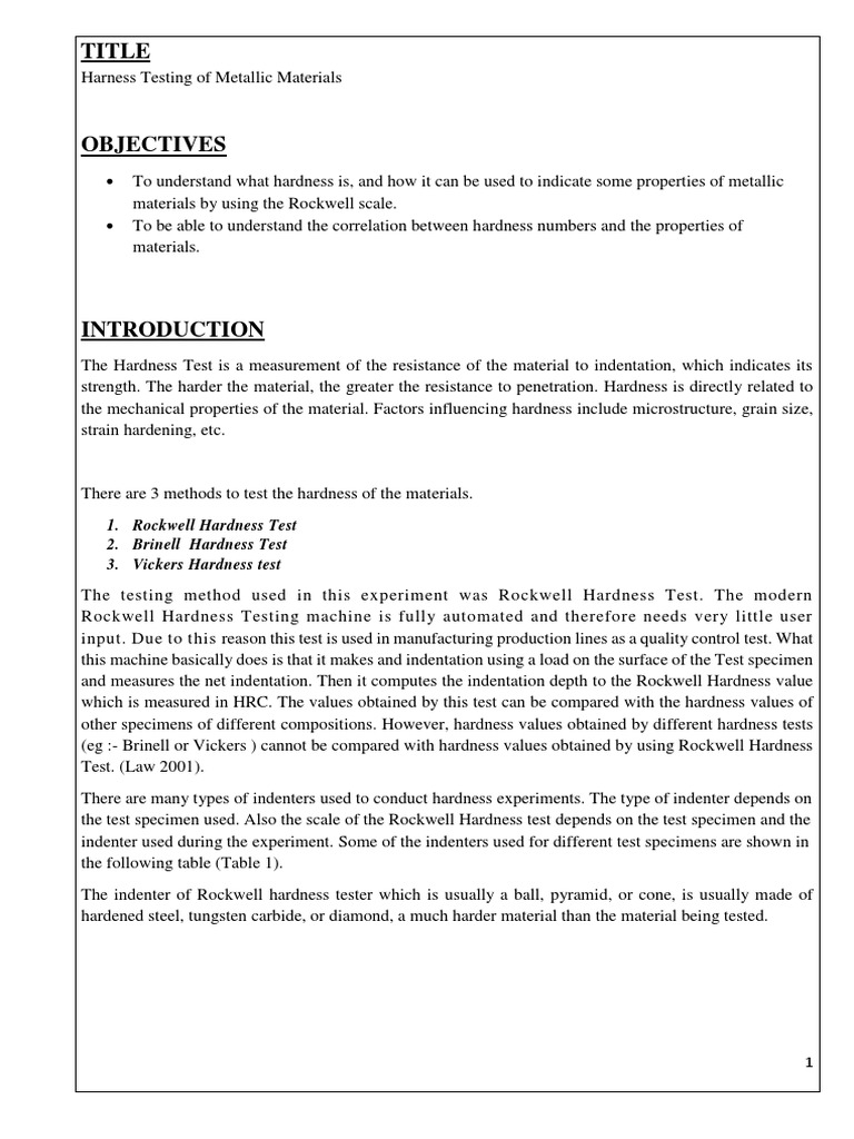 Hardness Testing Lab Report at Jeremy Fenner blog