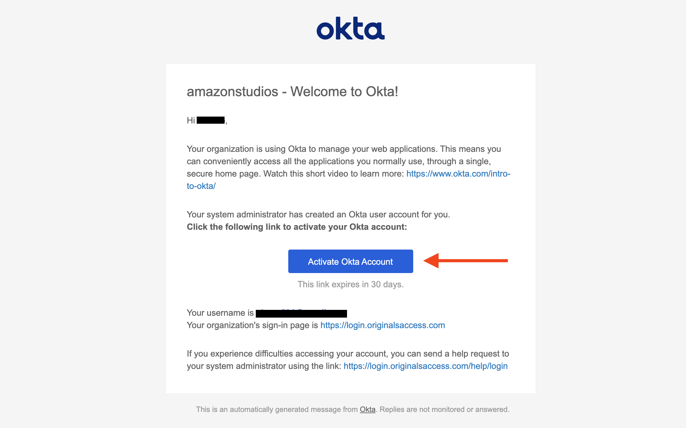 Activating your Okta Account for Originals Access Amazon Studios