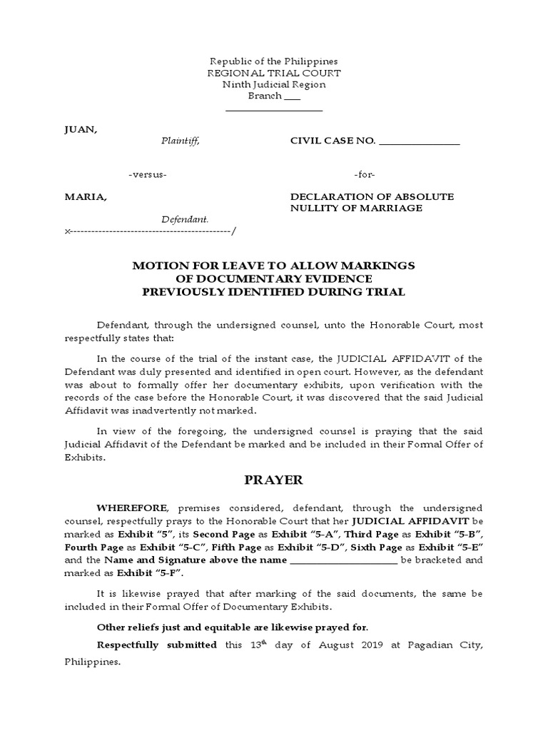 Sample Motion For Leave of Court To File Demurrer To EvidenceLibel