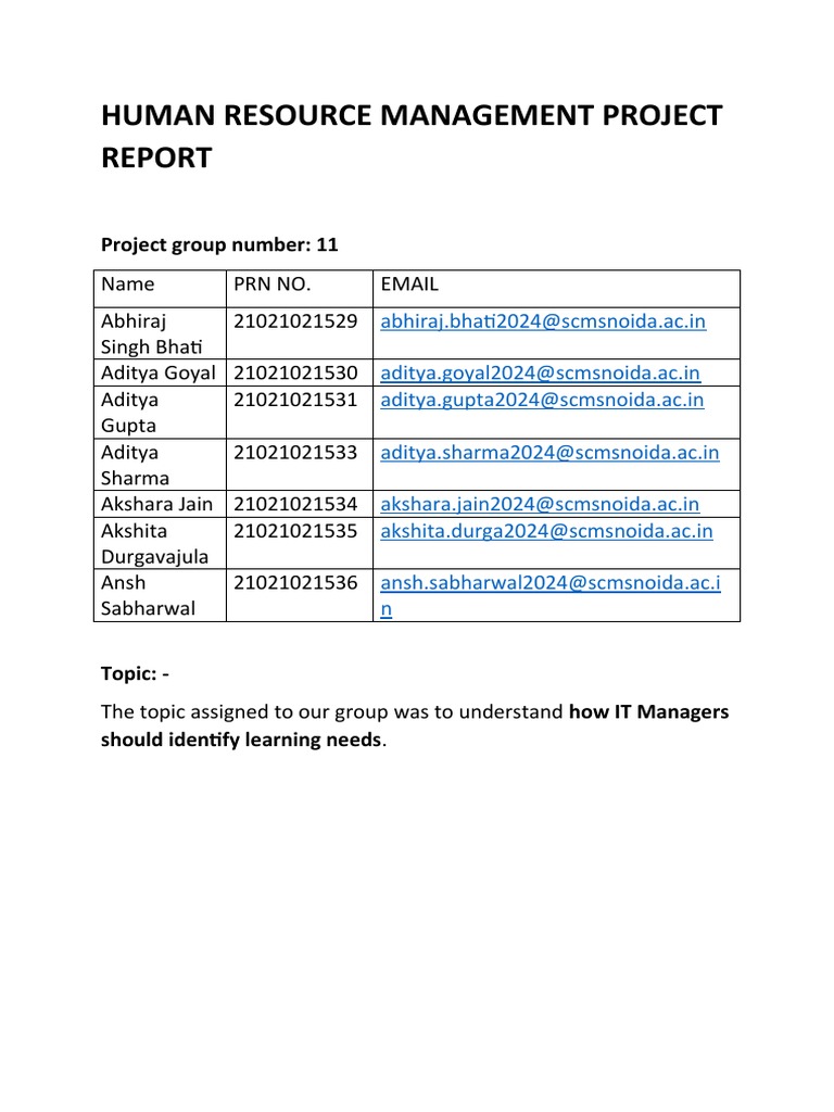 HRM Project Report Group 11 PDF Educational Technology Learning