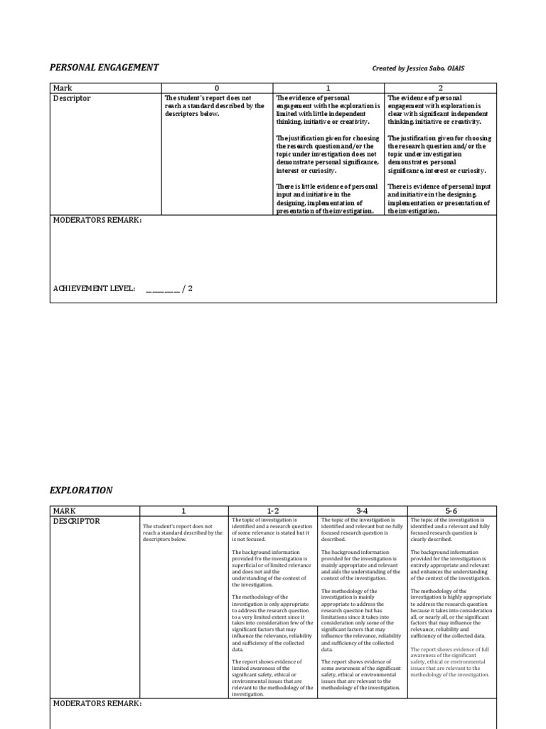 Each of the 3 aspects are worth a maximum of 2 points each. This criterion assesses the extent to which the student engages with the exploration and makes it their own. Pe and comm are holistic grades. A comprehensive guide to the biology ia criteria along with a checklist. Components of the ia each of the following 3 components are.