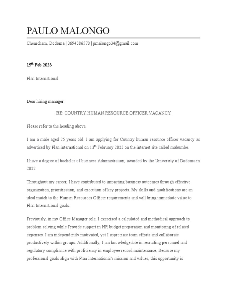 plan international cover letter PDF