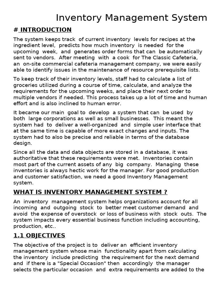 Inventory Management System Pdf - Explain the meaning and types of inventory. Inventory management system (ims) is a software application or tool that enables businesses to track and manage their inventory. Know the factors affecting the. Describe the meaning and objectives of inventory management. A comprehensive guide to inventory management, covering its importance, strategies, best practices, and the role of technology in streamlining the.