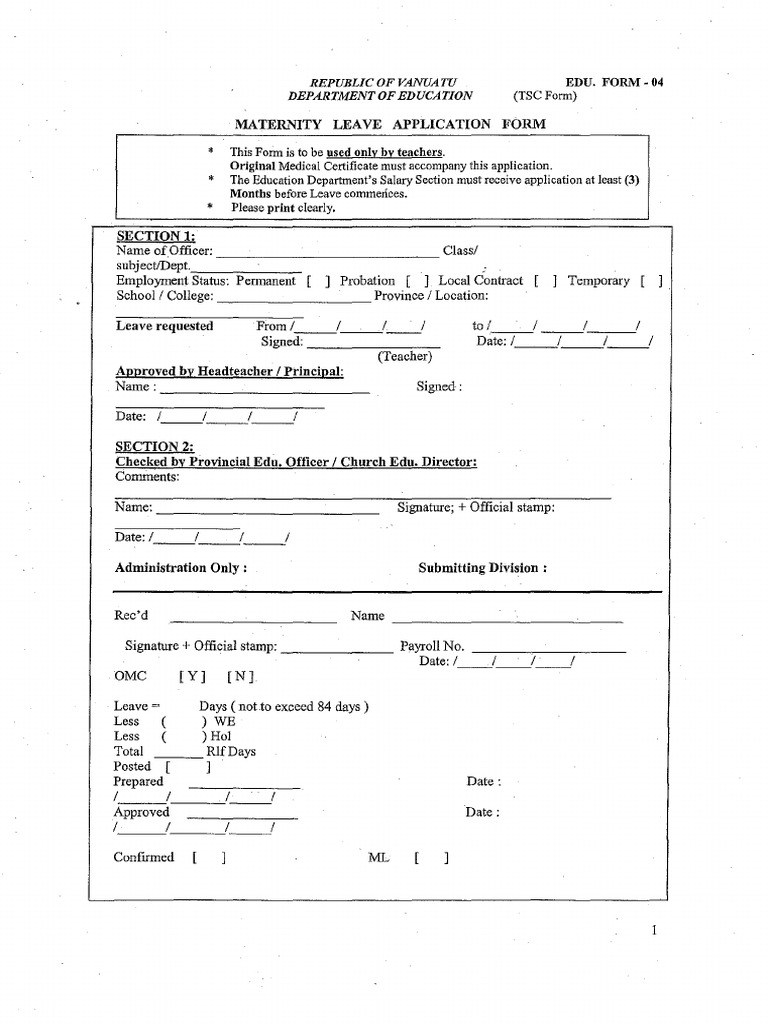 Maternity Leave Application Form PDF Parental Leave Payroll Tax
