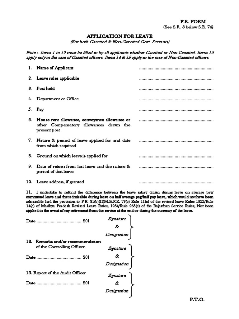 Leave Application Mastery Form 1 Application For Leave As Per Rule 14