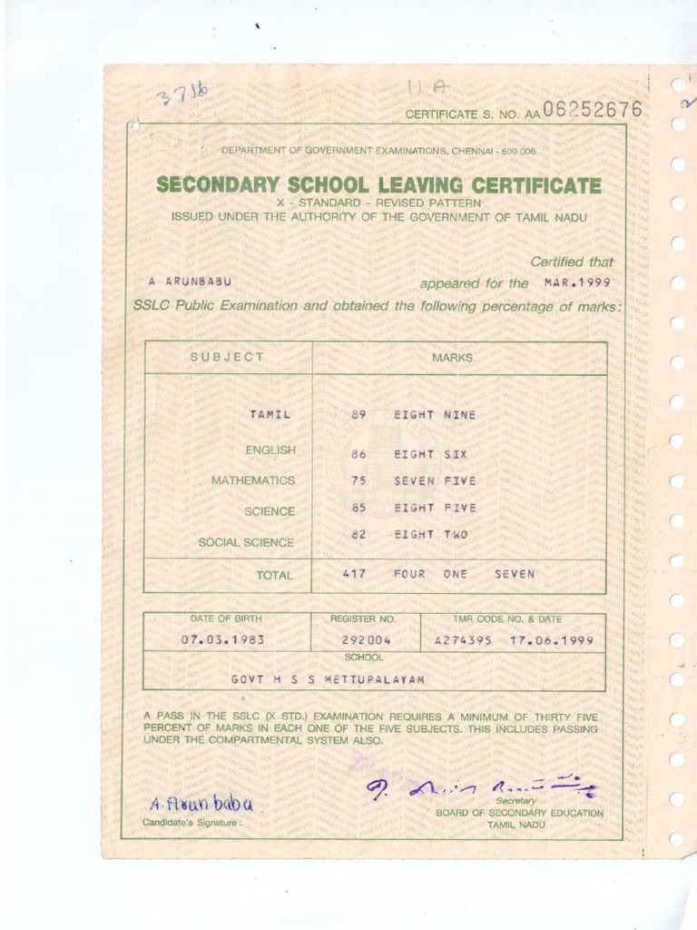 Secondary School Leaving Certificate Pdf Fill Online, Printable