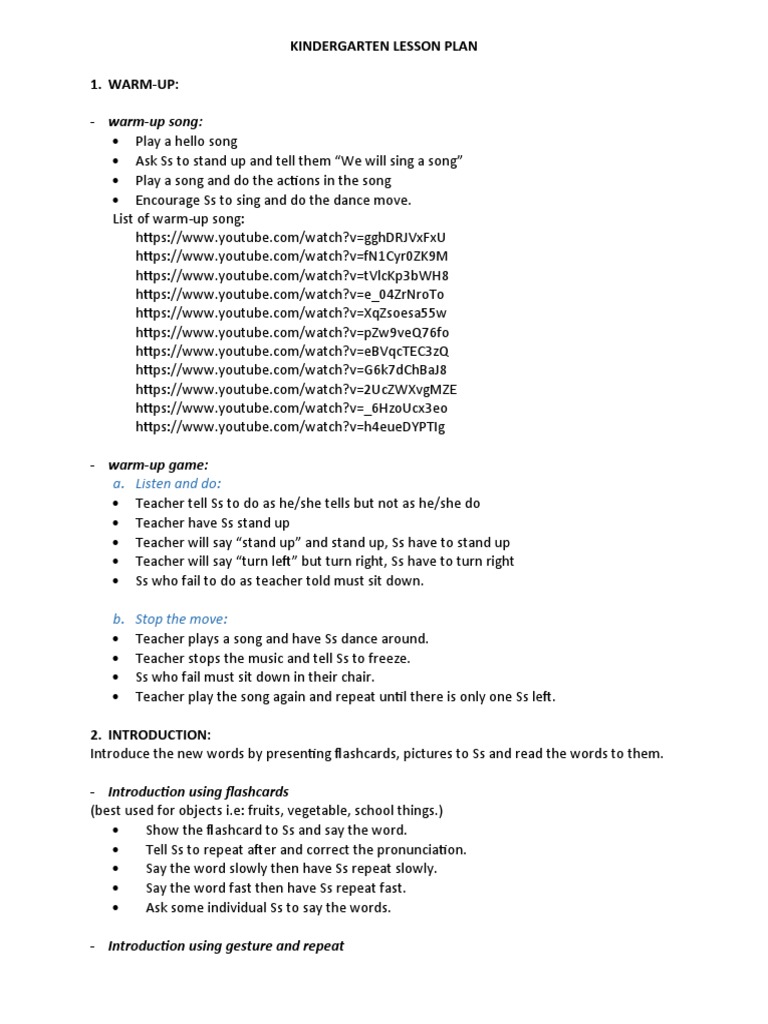 Kindergarten Lesson Plan PDF Learning Lesson Plan