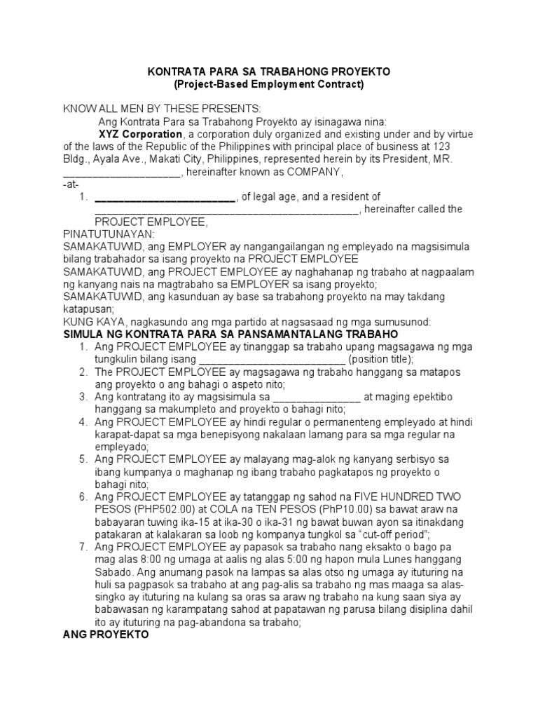 Contract of Employment Sample Philippines PDF Overtime Employment