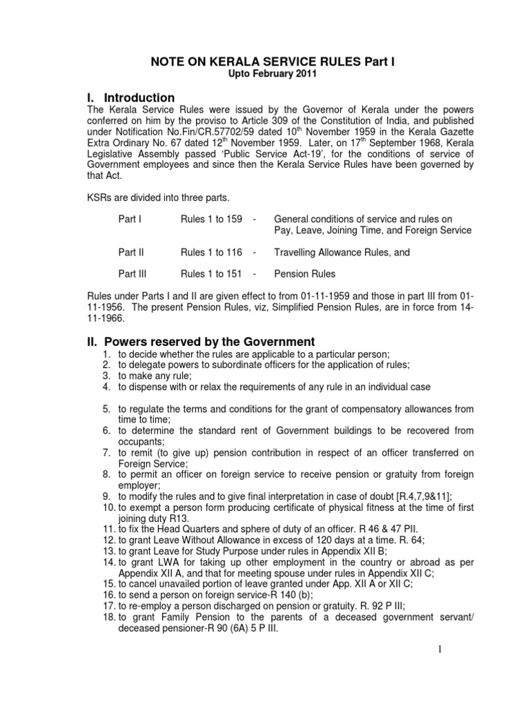 Kerala Service Rules part I Note uploaded by T james Joseph