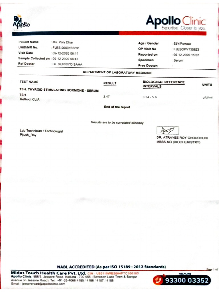 Vijaya Diagnostic Centre Laboratory Test Report Download Free PDF