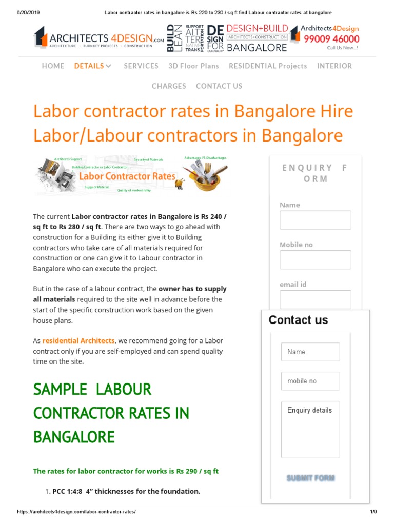Labor Contractor Rates in Bangalore Is Rs 220 To 230 SQ FT Find