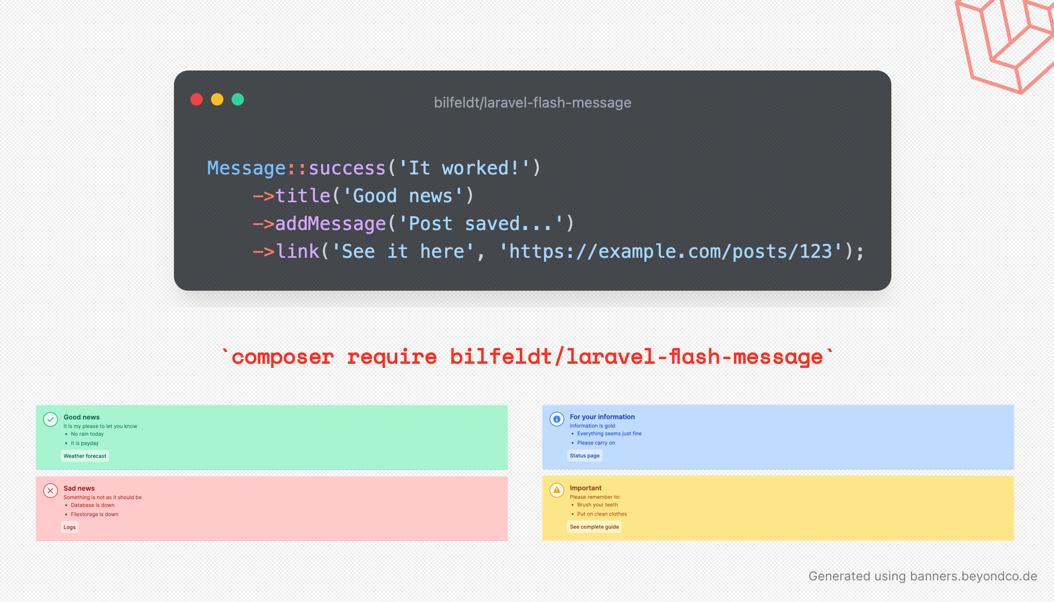 GitHub bilfeldt/laravelflashmessage A package to flash multiple