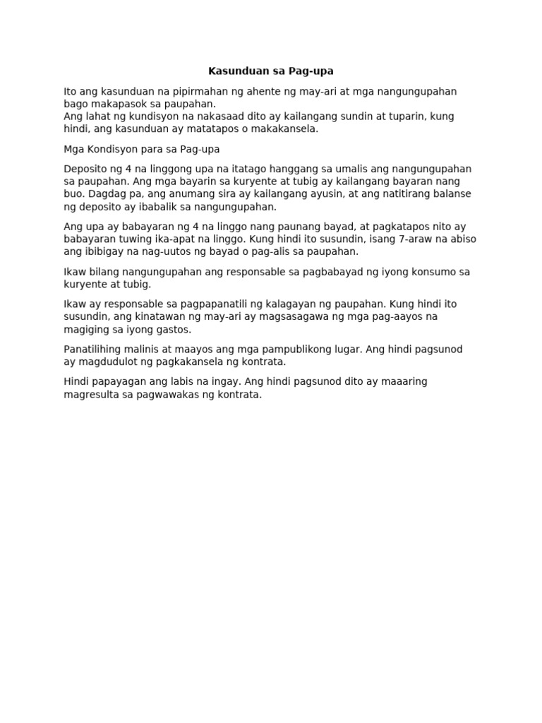 Lease Agreement Tagalog Kasunduan Sa Pagpapaupa Ng Apartment Vrogue
