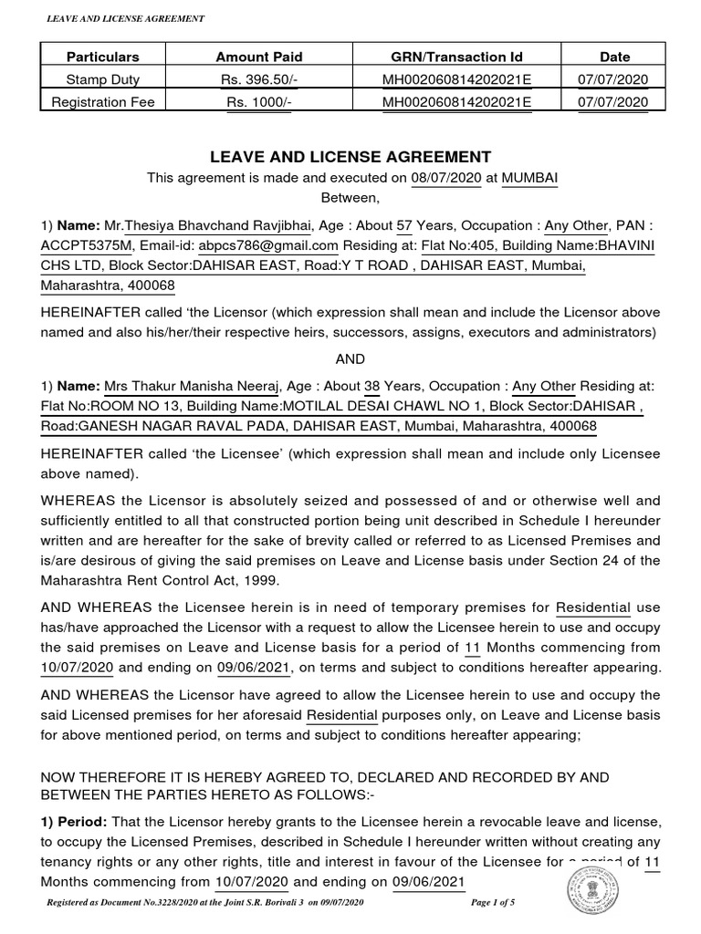 Online Rent Agreement Navi Mumbai Leave and License Agreement