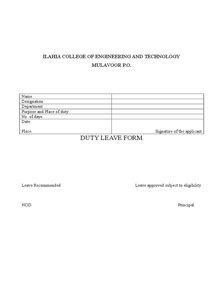 Staff Duty Leave Format PDF