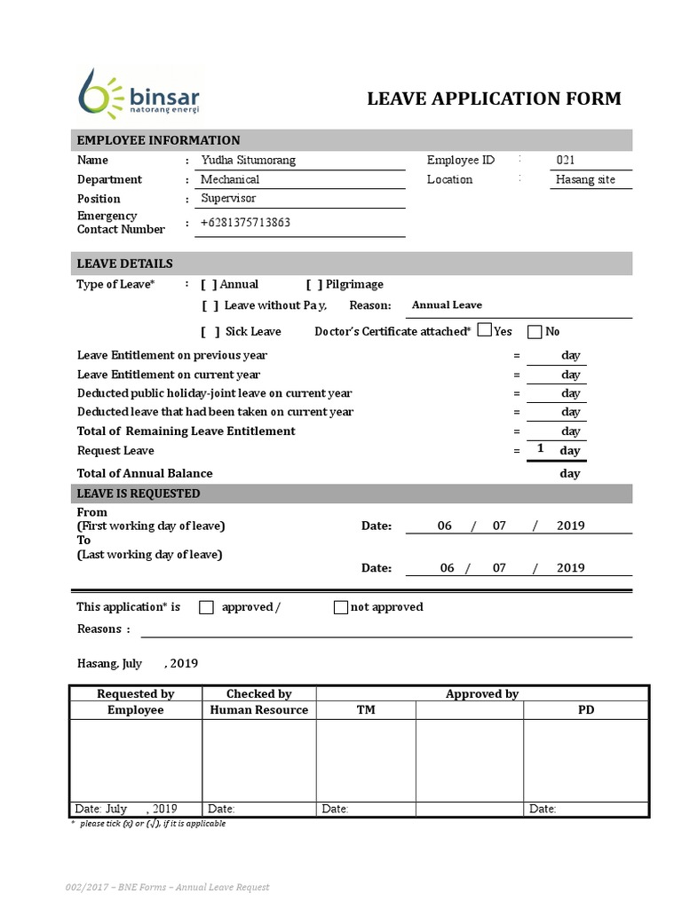 Annual Leave Application Template at viiadrianablog Blog