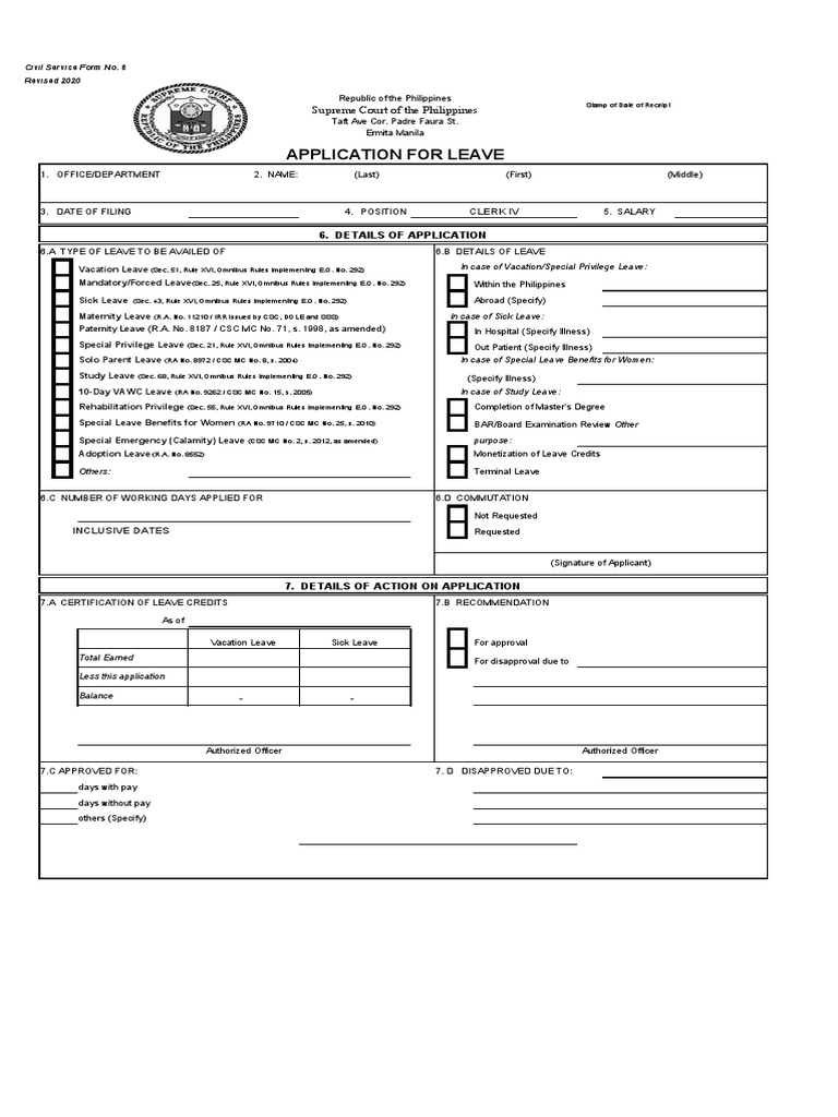 Leave Application Form Pdf