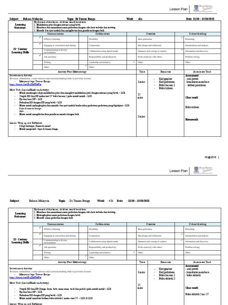 Contoh Lesson Plan Dalam Bahasa Melayu Blake Edmunds
