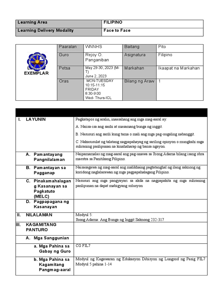 Lesson Plan Tagalog PDF