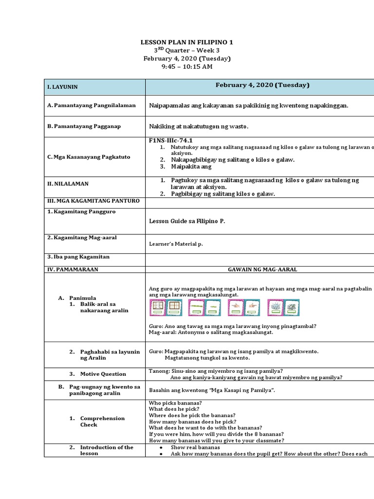 Detailed Lesson Plan In Filipino Grade 1 3rd Quarter Printable