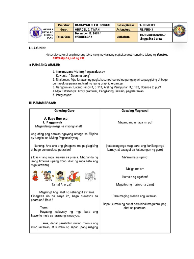 Sample Detailed Lesson Plan In Filipino Elementary Printable Online