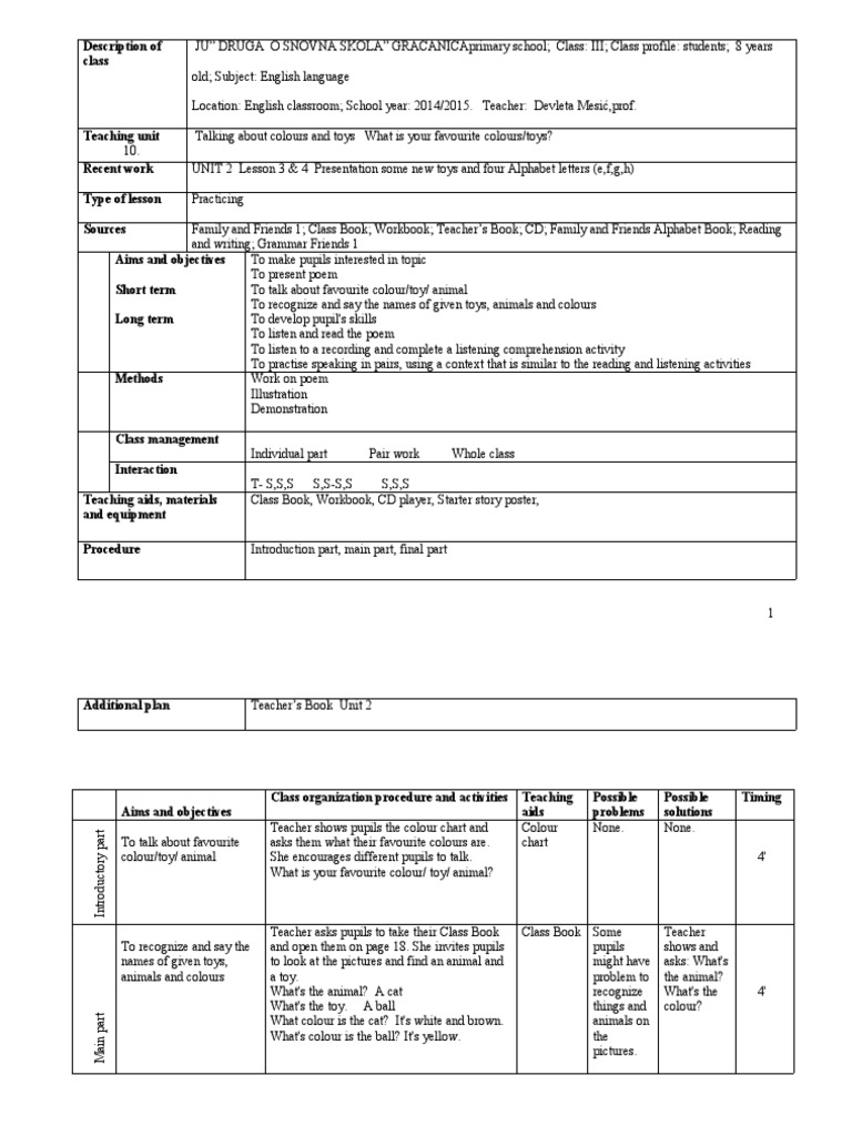 Sample ESL Lesson Plan Format PDF Teachers Lesson Plan