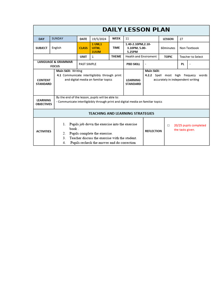 Lesson Plan Week 11 PDF Lesson Plan Teachers
