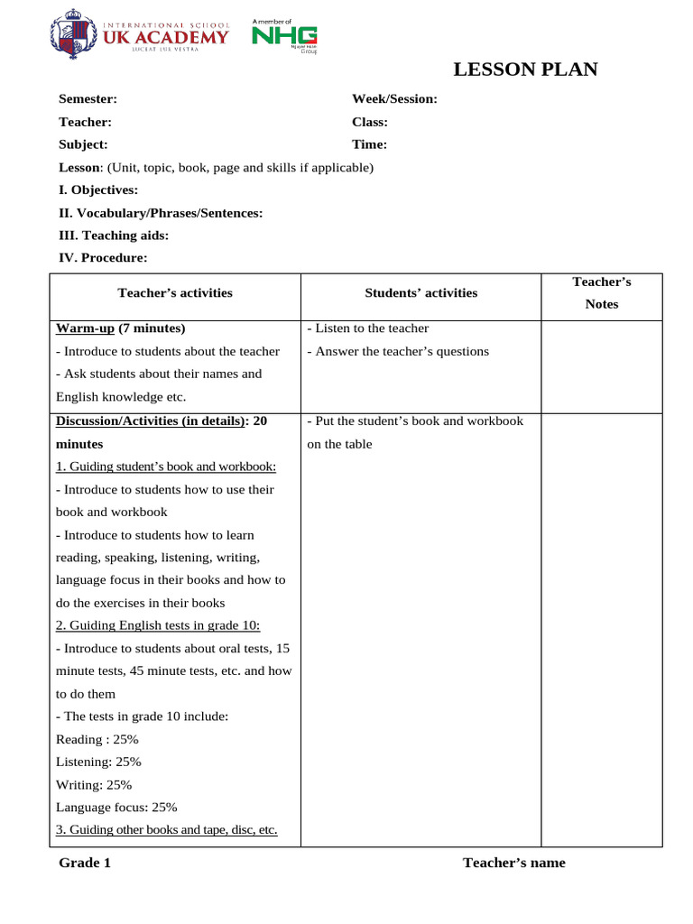 • develop the introduction with connections • plan the specific learning activities (the main body of the lesson) • develop a. Below is a sample of a lesson plan template and an example of how one might use it. A lesson plan is an extremely useful tool that serves as a. Lesson planning with purpose : All good teachers have.