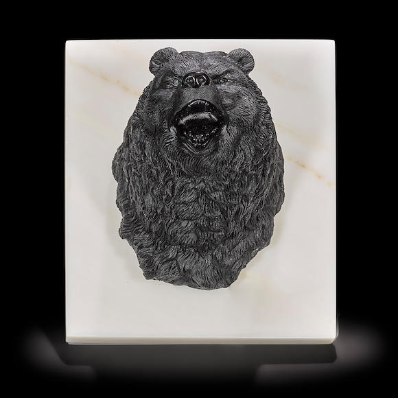 Bonhams Wallmounted Black Obsidian carving of a Bear