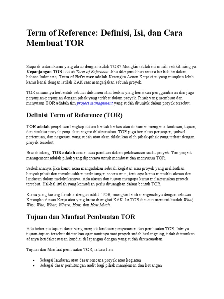 Maksud Term Of Reference - apa itu terms of reference? secara singkat, tor adalah file awal dalam penyelenggaraan sebuah acara, bisa berupa. Term of reference (tor), yang juga dikenal sebagai surat tugas atau pedoman pelaksanaan, adalah dokumen yang merinci tujuan, ruang.
