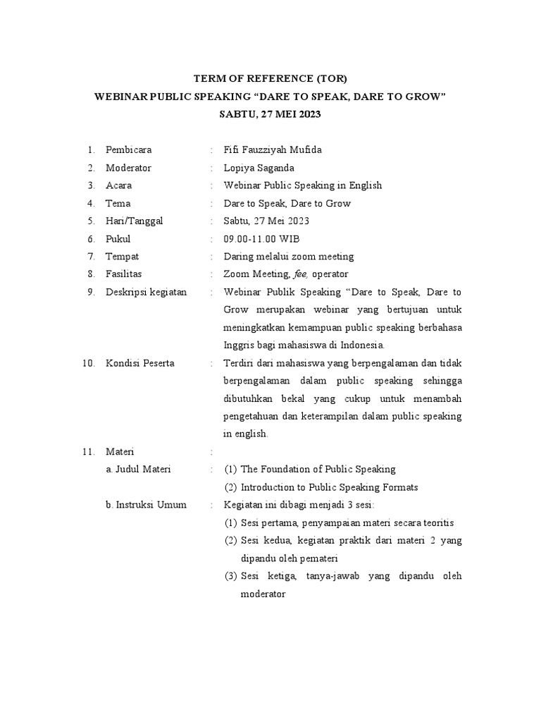apa itu terms of reference? secara singkat, tor adalah file awal dalam penyelenggaraan sebuah acara, bisa berupa. Term of reference (tor), yang juga dikenal sebagai surat tugas atau pedoman pelaksanaan, adalah dokumen yang merinci tujuan, ruang.