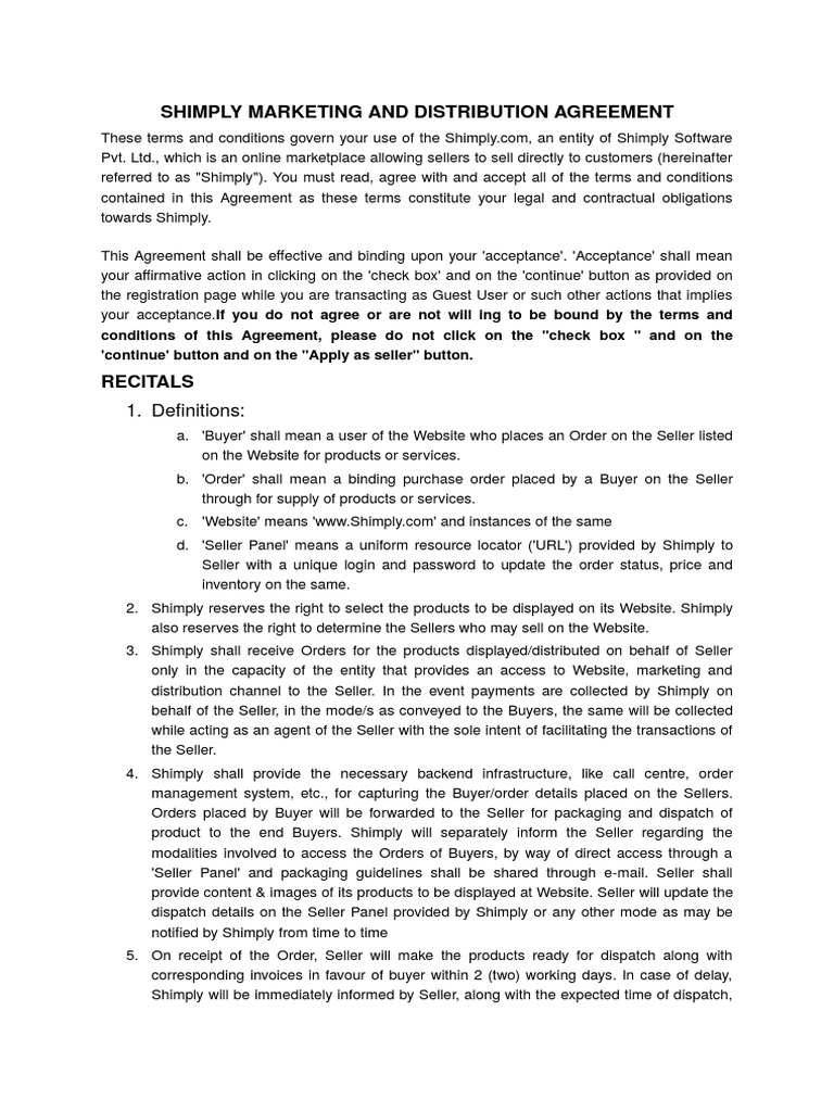Shimply Marketing and Distribution Agreement Download Free PDF