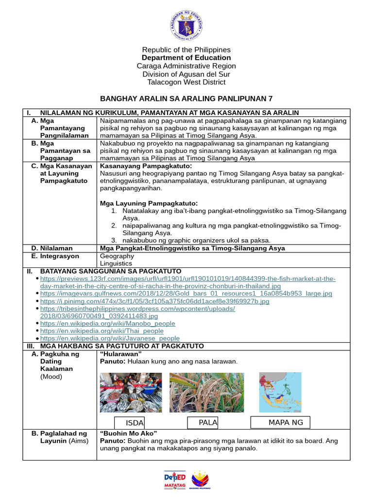 ARALING PANLIPUNAN 7 MATATAG LESSON EXEMPLAR YouTube