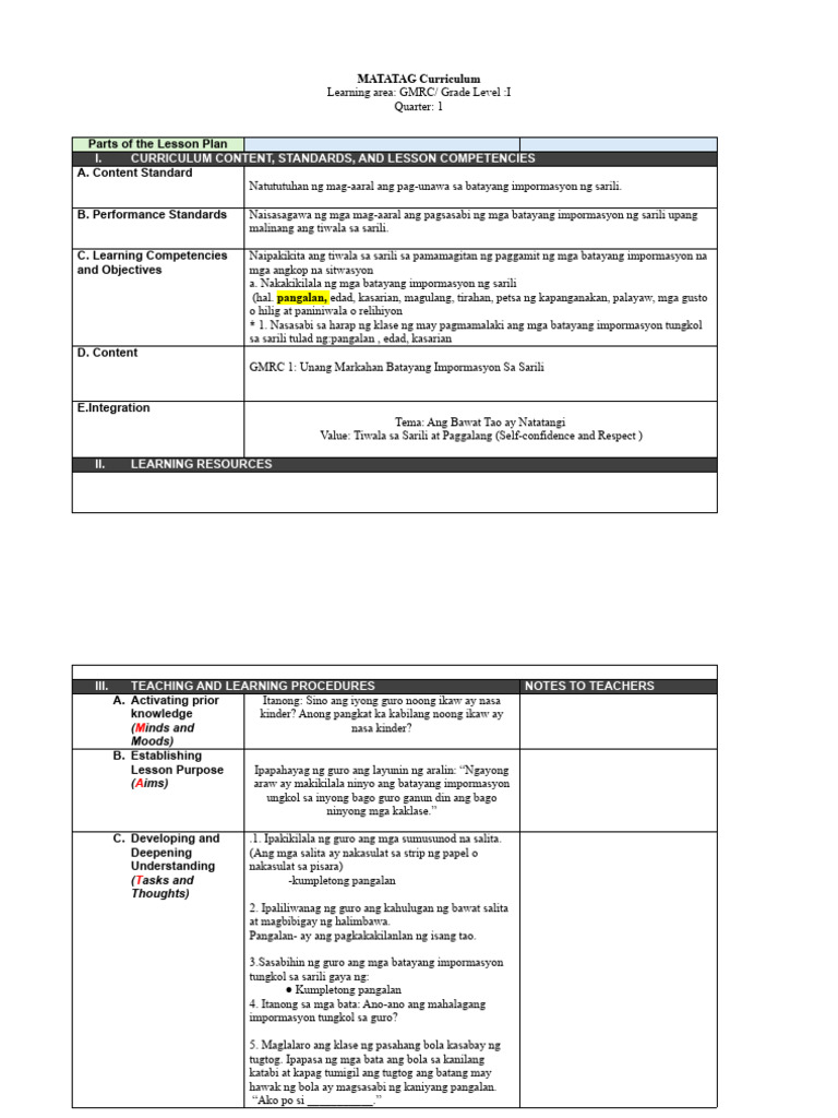 MATATAGLesson Exemplar TemplateTAGALOG PDF