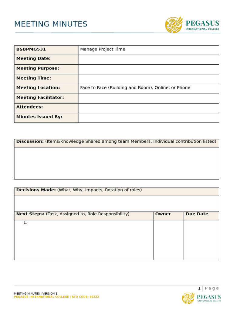 Meeting Minutes Template PDF