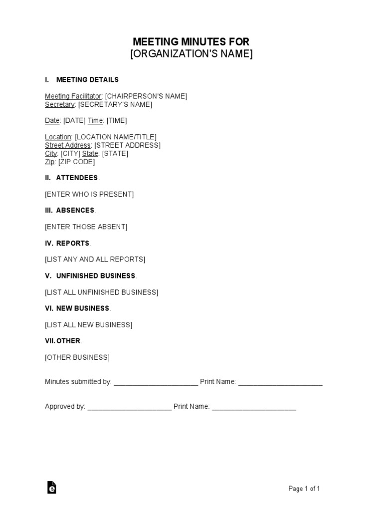 Meeting Minutes Template Download Printable PDF Templateroller