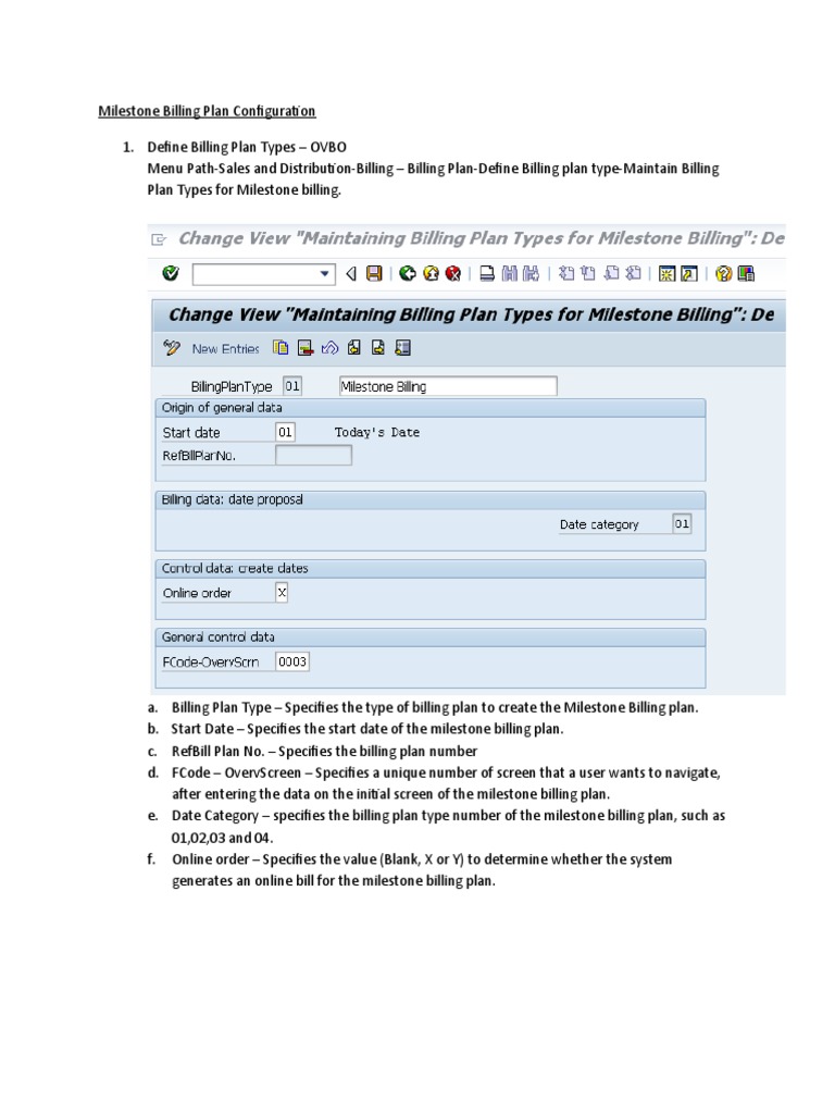 Follow the sales cycle as normal sales cycle for particular. In sales order, at item level, we require to maintain the billing plan. Milestone billing is often used in plant engineering and construction in order to spread billing of the full amount over several dates within a billing. Milestone billing means distributing the total amount to be billed over multiple.