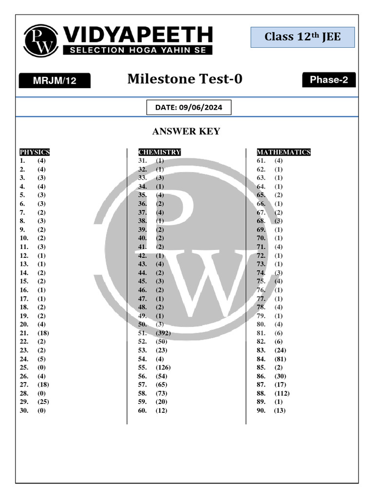 Milestone Practice Test 0 (Home Assignment) Answer Key PDF Quantity