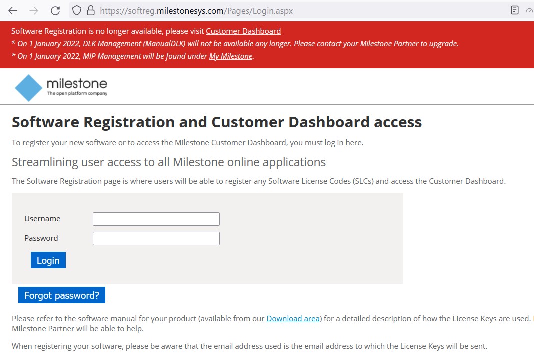 With milestone customer dashboard you can register, view, activate and update software license codes (slcs). Log in to milestone customer dashboard. In the register new software. The software license code (slc) is printed on your order confirmation and the software license file is named after your slc.