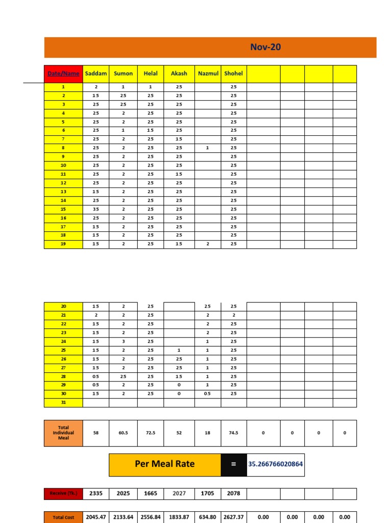 Meal attendance sheet Fill out & sign online DocHub